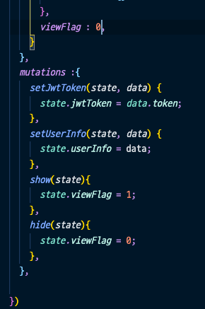 vuex로 show state관리 0일때 숨기고 1일때 보여지도록